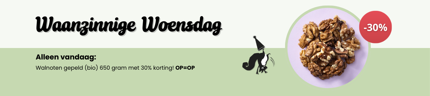 Niks is lekkerder dan vers gebrande noten of vers geroosterde noten. Wij branden en roosteren onze notenvarianten elke dag zelf voordat wij ze verpakken. Verser kan haast niet! In ons assortiment vindt u ook diverse biologische noten en natuurlijke producten. Deze producten zijn 100% biologisch en vrij van extra toevoegingen. Ontdek de lekkerste superfoods, pitten & zaden, muesli & granen, bakproducten en meer tegen zeer scherpe prijzen en bestel gemakkelijk online!