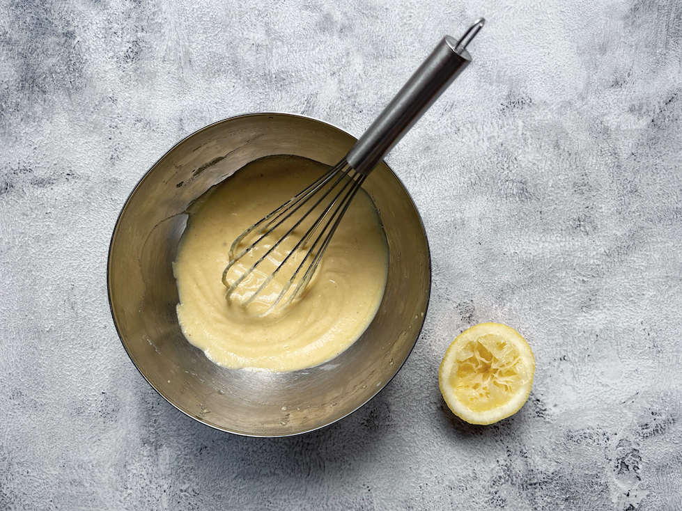 - Breng de saus verder op smaak met het citroensap, zout en naar wens een snufje cayennepeper of witte peper.