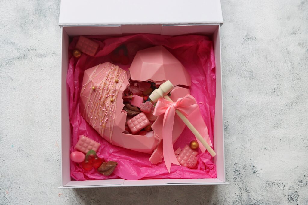 Gevuld met bonbons en andere lekkernijen is dit piñata chocolade hart de ultieme manier om een verassing te presenteren. Perfect voor bijvoorbeeld Moederdag, Valentijsdag, een verjaardag, aanzoek of gender reveal!