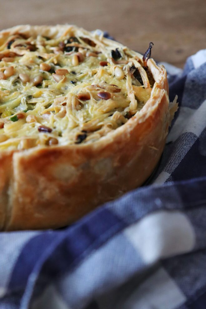 - Keukenbenodigdheden: deegroller, garde, quiche-of springvorm van 24 cm en een rasp