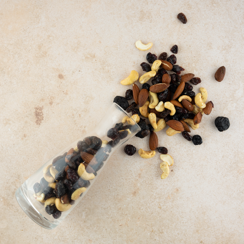 Deze mix bestaat uit geroosterde cashewnoten, geroosterde amandelen, rozijnen, cranberry’s, bosbessen en kersen. Een vrolijke verzameling van smaken die perfect op elkaar aansluiten. Ideaal om je smaakpapillen blij te maken.