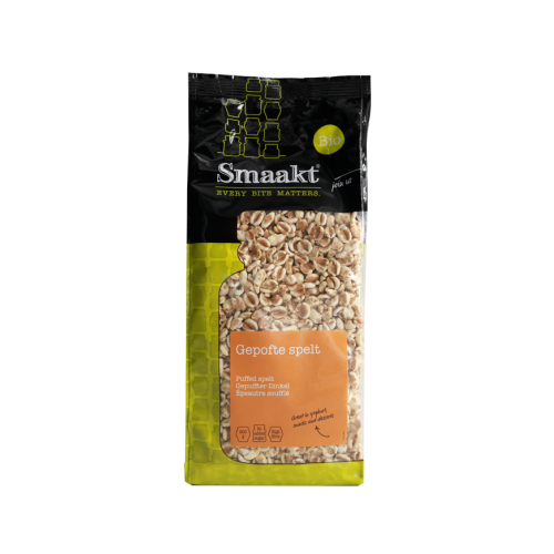 Spelt is een van de oudste graansoorten die we kennen. Het is helaas een graansoort die een beetje in de vergetelheid raakte. Gelukkig is spelt weer helemaal terug van weggeweest. Smaakt zorgt ervoor dat we een heerlijke gepofte variant van deze oergraan kunnen proberen. De gepofte spelt van Smaakt is 100% biologisch en heeft een heerlijke zoete, nootachtige smaak.