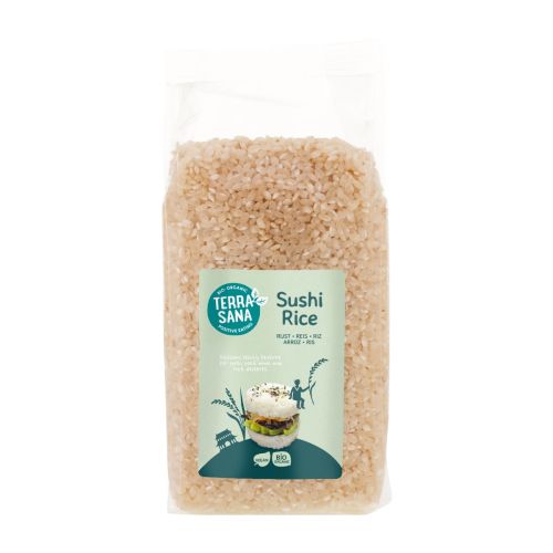 Sushirijst kenmerkt zich door de grote ronde korrel. Deze biologische sushirijst van Terrasana is glutenvrij en voor veel meer zaken te gebruiken dan enkel voor het maken van sushi. Maak bijvoorbeeld een heerlijk dessert door de rijst met kokosmelk in te koken of serveer het in een bouillon van shiitake en miso.